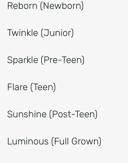 Each neon pet goes through 6 ages.